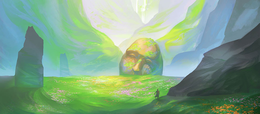 It is about how to create a simple natural scene with a facial stone in this tutorial. You will see how this artwork to be made from gathering images for reference, to color and brightness adjustment. The skills are applicable to different kind of drawings.