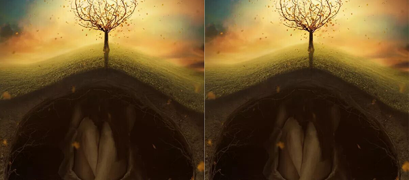 Wish to create this amazing surreal underground scene with a heart created from branches and scattering leaves? This photo manipulation tutorial will teach you various techniques such as blending, complex masking, painting, working with groups, and more.