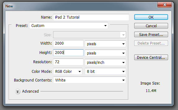 Firstly, we need to create a new document. Open up Photoshop and create a new document by going to File > New. I’m using a Web preset, set to 2000 x 2000 pixels.