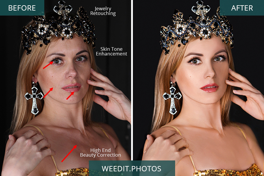 I like the way the photo editors have worked with the skin. It has become more tender, and the work with the contrast is simply gorgeous. Moreover, WeeditPhotos prices are significantly lower than the cost of Photoshop editing services you’ll see below, even for portrait and beauty retouching.